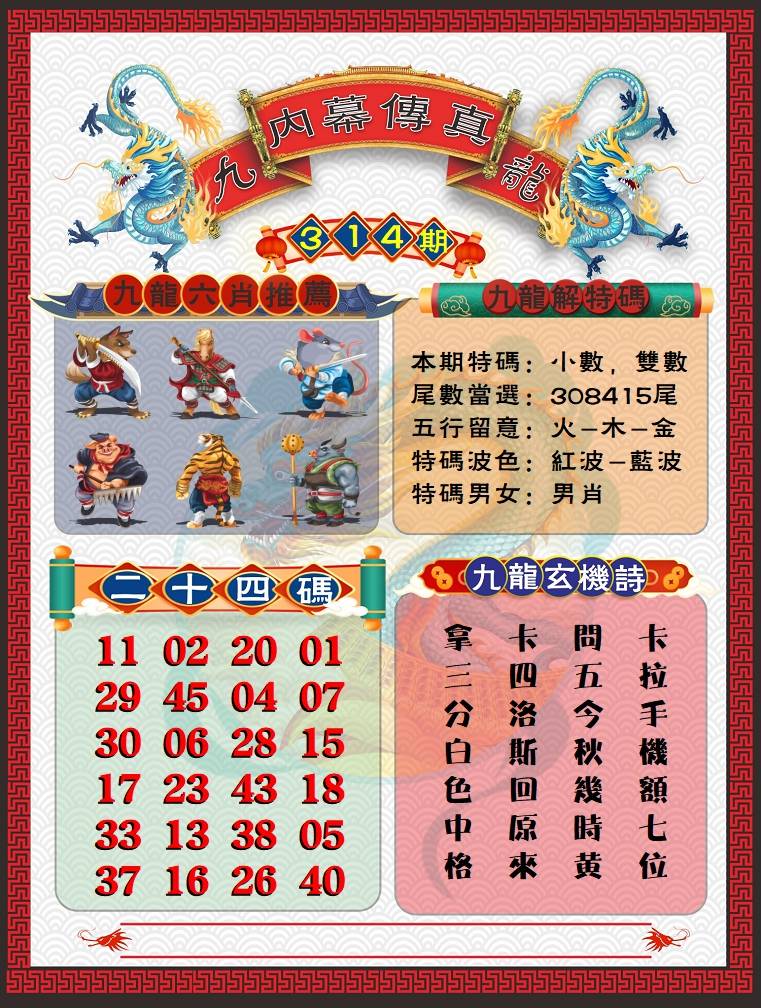 | 314期:六肖中特(鼠猪蛇牛鸡龙)开?00 |