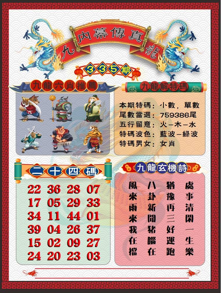 | 335期:必中㈢肖: 狗龙虎 |